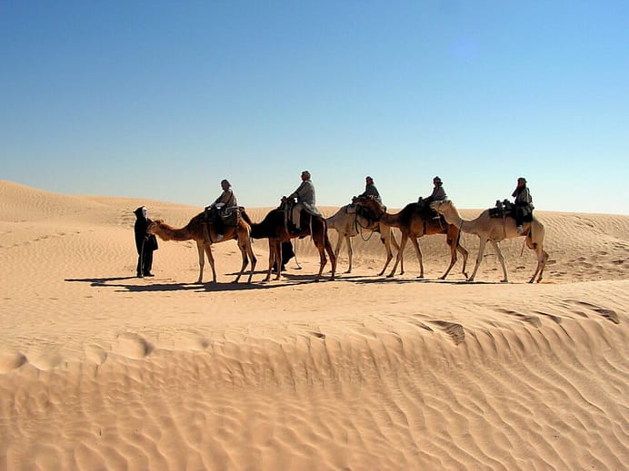 A Douz, la “Porta del deserto”, le dune dorate e il calore del Sahara ci abbracciano. Un’escursione in cammello è un’esperienza da non perdere!